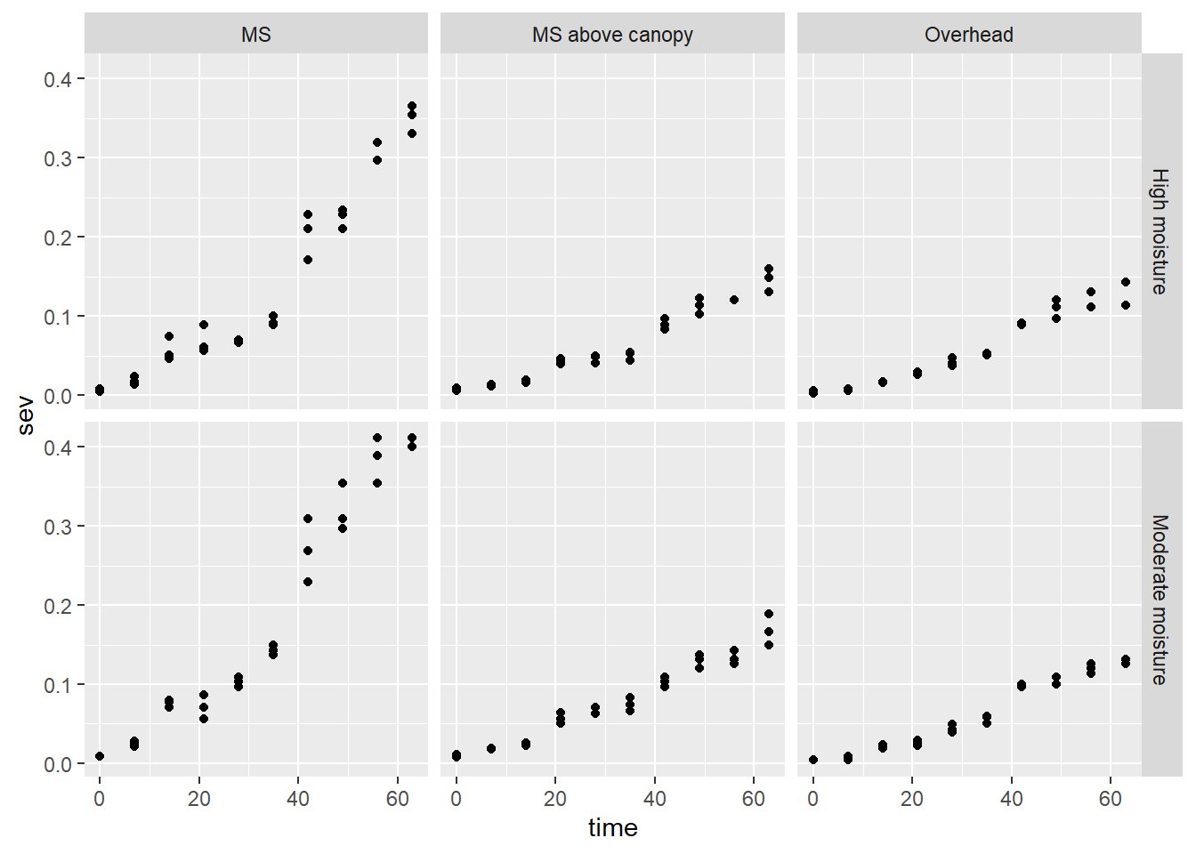 library(epifitter) # Para AUDPC(), cv.model(), e o dataset PowderyMildew