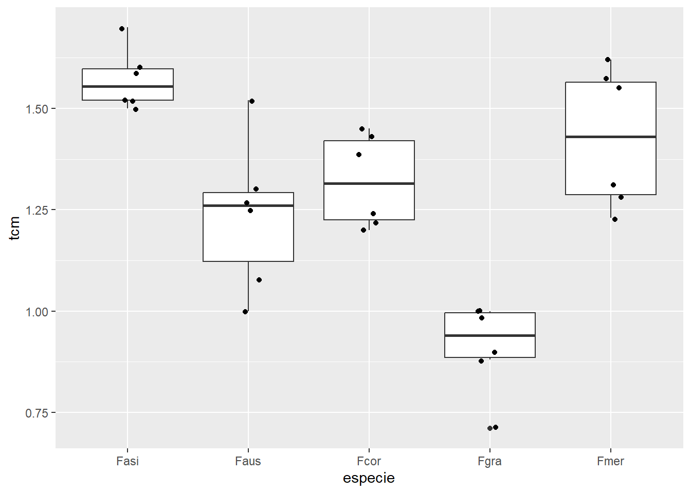 micelial |> ggplot(aes(especie, tcm)) +